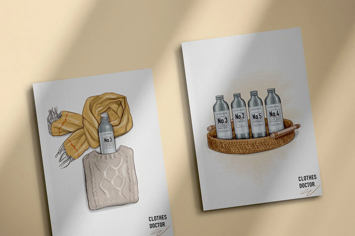 I collaborated with marketing team to create a series of custom illustrations for Clothes Doctor, a premium brand specializing in luxury laundry and garment care products. The visual approach highlights the brand’s elegant and sustainable ethos, combining clean design with detailed, refined illustration work.