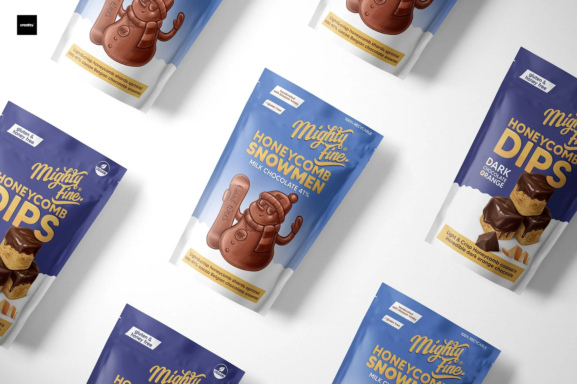 This project focuses on the development of a complete packaging design system and a suite of custom illustrations for "Mighty Fine Chocolate," an authentic brand specializing in handcrafted chocolates and chocolate-covered honeycombs. The design approach blends artisanal elegance with whimsical, nature-inspired artwork to create an indulgent, story-rich experience for customers.